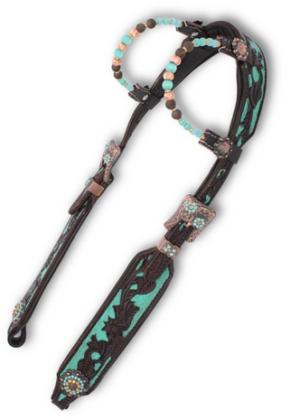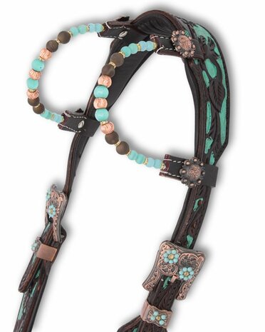 Westernhoofdstel – Two Ear – Super Soft – Dark Chestnut & Turquoise