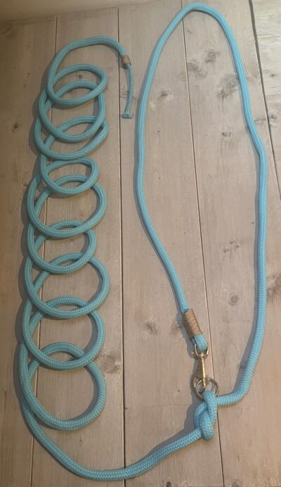 Onze 2in1 lijn is een leadrope die speciaal ontworpen is voor grondwerk en liberty training van je paard. Mocht je met je training nog nét tussen vast aan de leadrope en in Liberty werken zitten, is deze leadrope een uitkomst. De leadrope kan je met de haak bevestigen aan je touwhalster, maar je kan hem ook bevestigen aan de ring die aan de lijn zit. Door de haak aan de ring te bevestigen kan je in vrijheid werken, maar zorg je toch nog voor een beetje controle. Deze leadrope biedt dus de perfecte balans tussen afstand en controle, waardoor je effectieve hulpen kunt geven terwijl je op afstand blijft.
