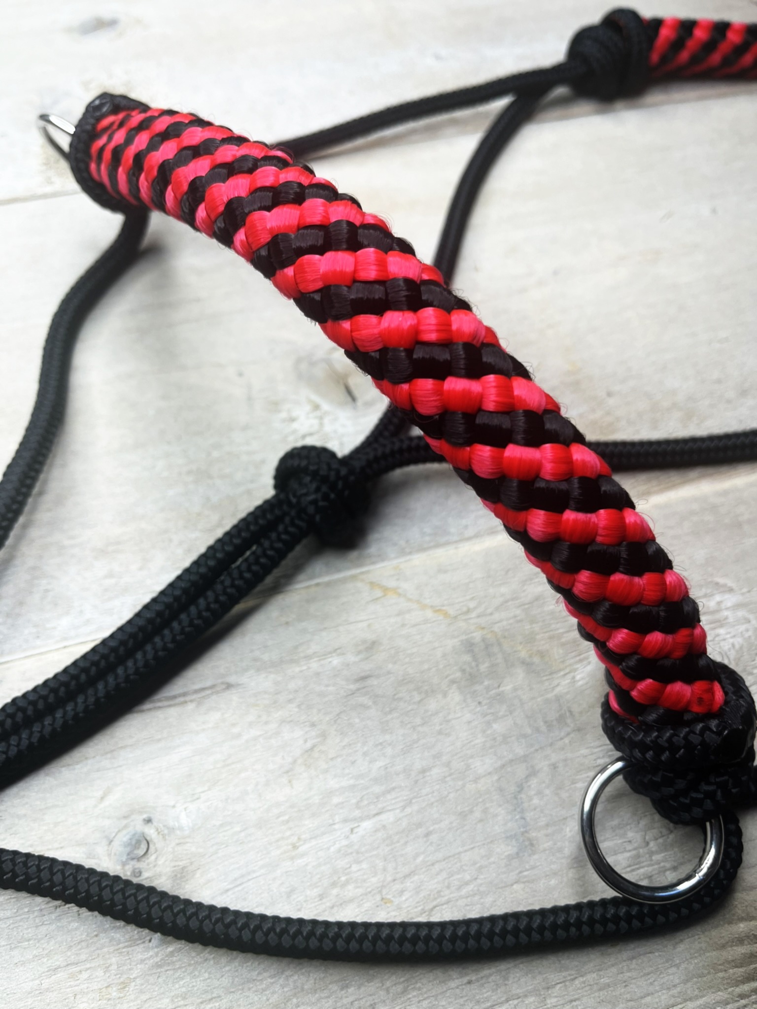 In tegenstelling tot een basic touwhalster, biedt dit luxe model extra comfort dankzij de Black Widow neus/kopstuk. Het halster is niet alleen functioneel, maar ook een blikvanger door de mooie combinatie van Black Widow met Red of black.