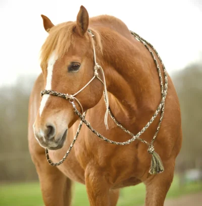 - Luxe Touwhalster: Deze is standaard met twee ringen bij het neusstuk, zodat er teugels aan bevestigd kunnen worden.