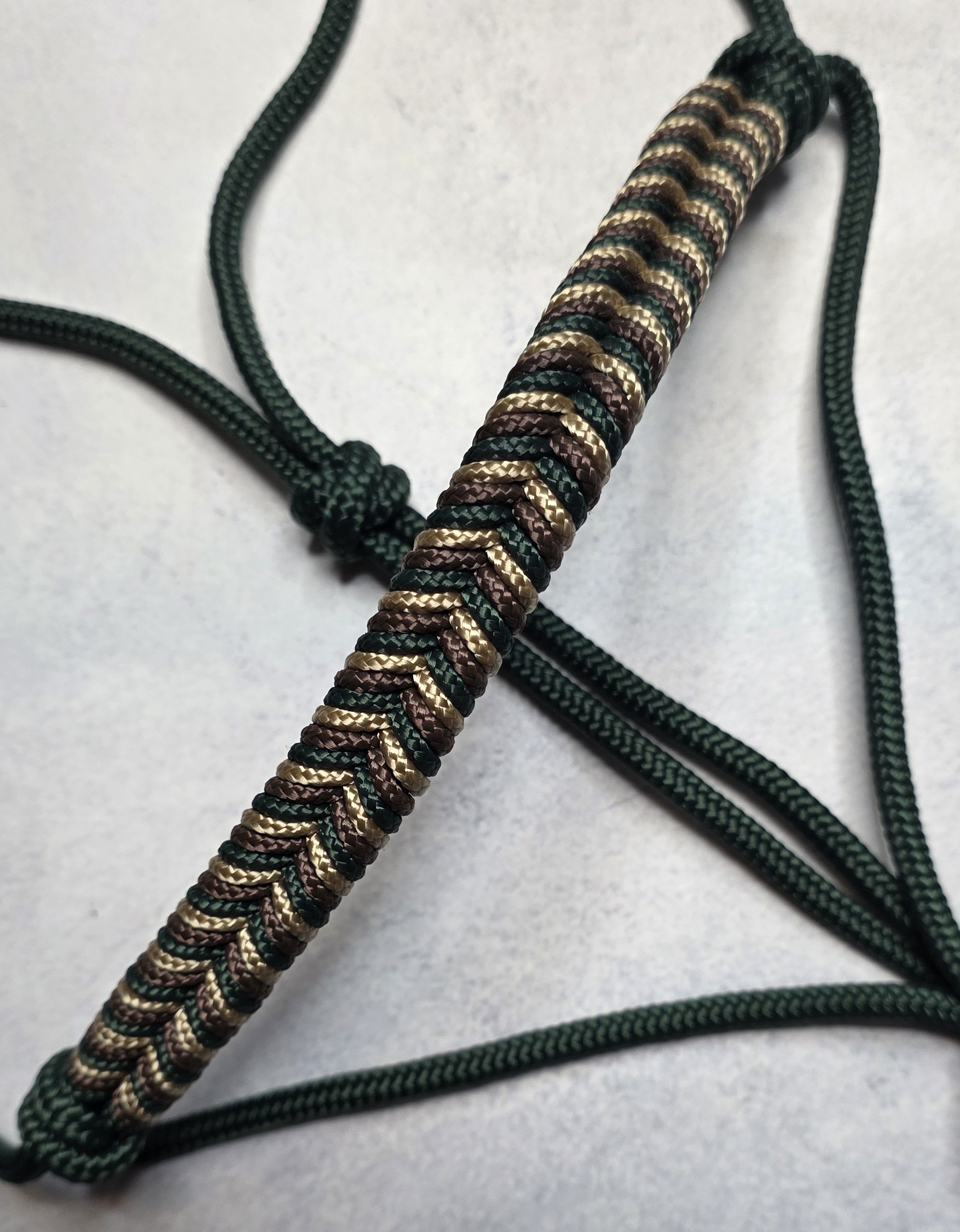 Dit touwhalster met visgraat Green Forest neusstuk is ontworpen voor als je opzoek bent naar een balans tussen controle en uitstraling. Het is een touwhalster met de voordelen van een basic touwhalster, maar met een persoonlijke tint eraan.