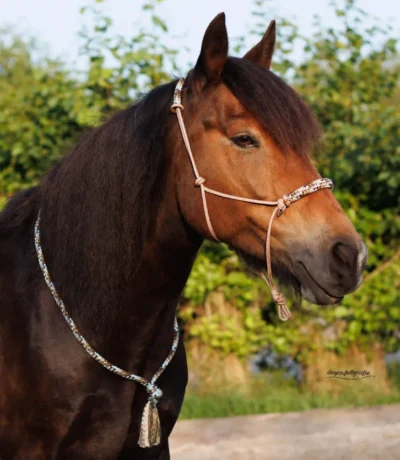 - Luxe Touwhalster: Deze is standaard met twee ringen bij het neusstuk, zodat er teugels aan bevestigd kunnen worden.